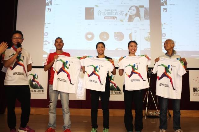 (组委会向嘉宾送出印有专属名字的腾马跑者之心 T恤)