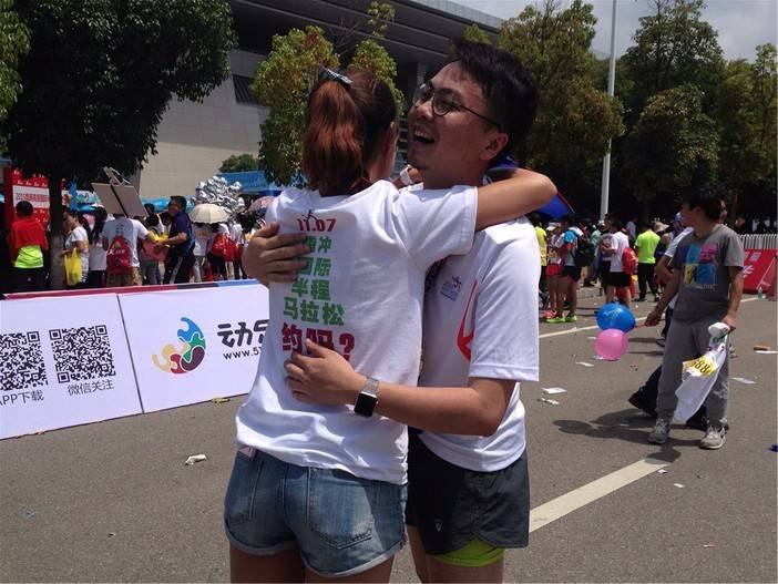 她们热情,亲切,给予每一位冲过终点的跑友大大地拥抱