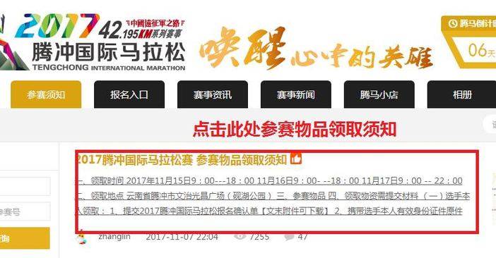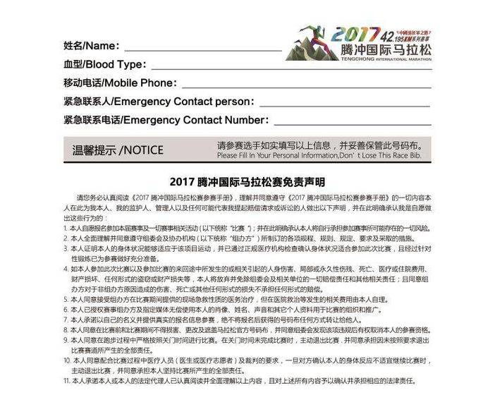 1、提交2017腾冲国际马拉松报名确认单(腾马官网自行下载打印)