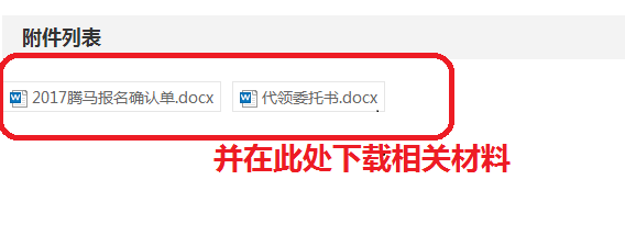 3、下载2017腾马报名确认单(代领委托书),并自行打印